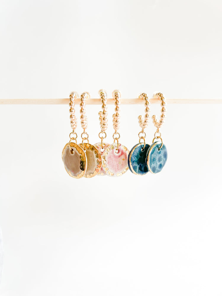 Designed with unique forms and carefully chosen colors, the pieces are assembled with 14-karat gold-plated stainless steel or brass offering both durability and elegance.