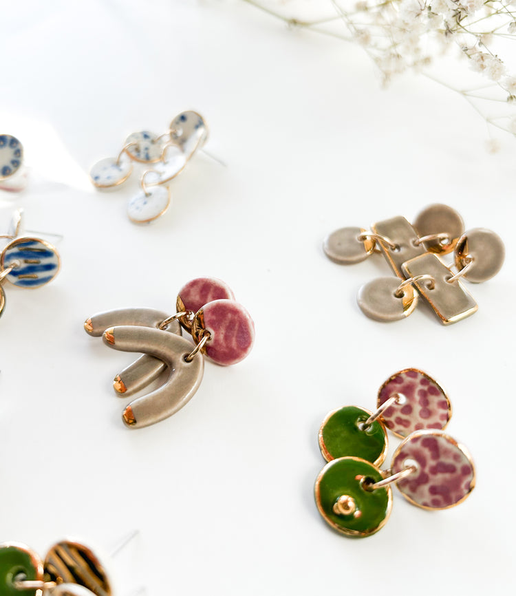 Discover our handmade ceramic jewelry, lovingly crafted from high-fired porcelain and stoneware clay and embellished with genuine 22 karat Gold Luster and Mother of Pearl.
