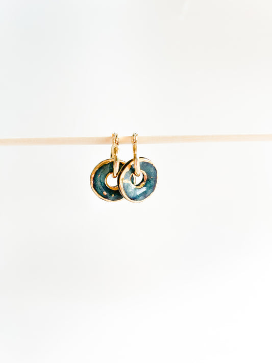 Handmade ceramic jewelry, meticulously crafted from high-fired porcelain and adorned with genuine 22 karat gold lustre. This captivating collection is elegantly assembled using 14 karat gold plated stainless steel, ensuring both durability, elegance and comfort.