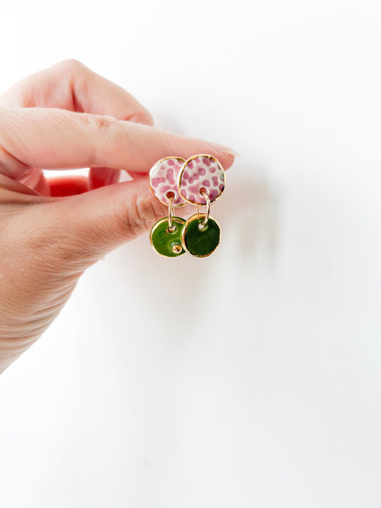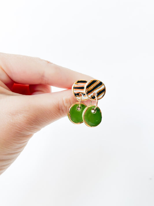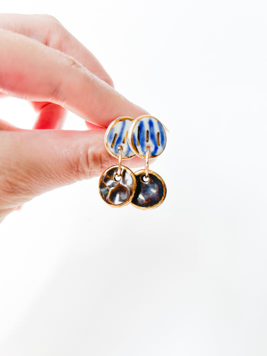 Handmade ceramic jewelry, meticulously crafted from high-fired porcelain and adorned with genuine 22 karat gold lustre. This captivating collection is elegantly assembled using 14 karat gold plated stainless steel, ensuring both durability, elegance and comfort.