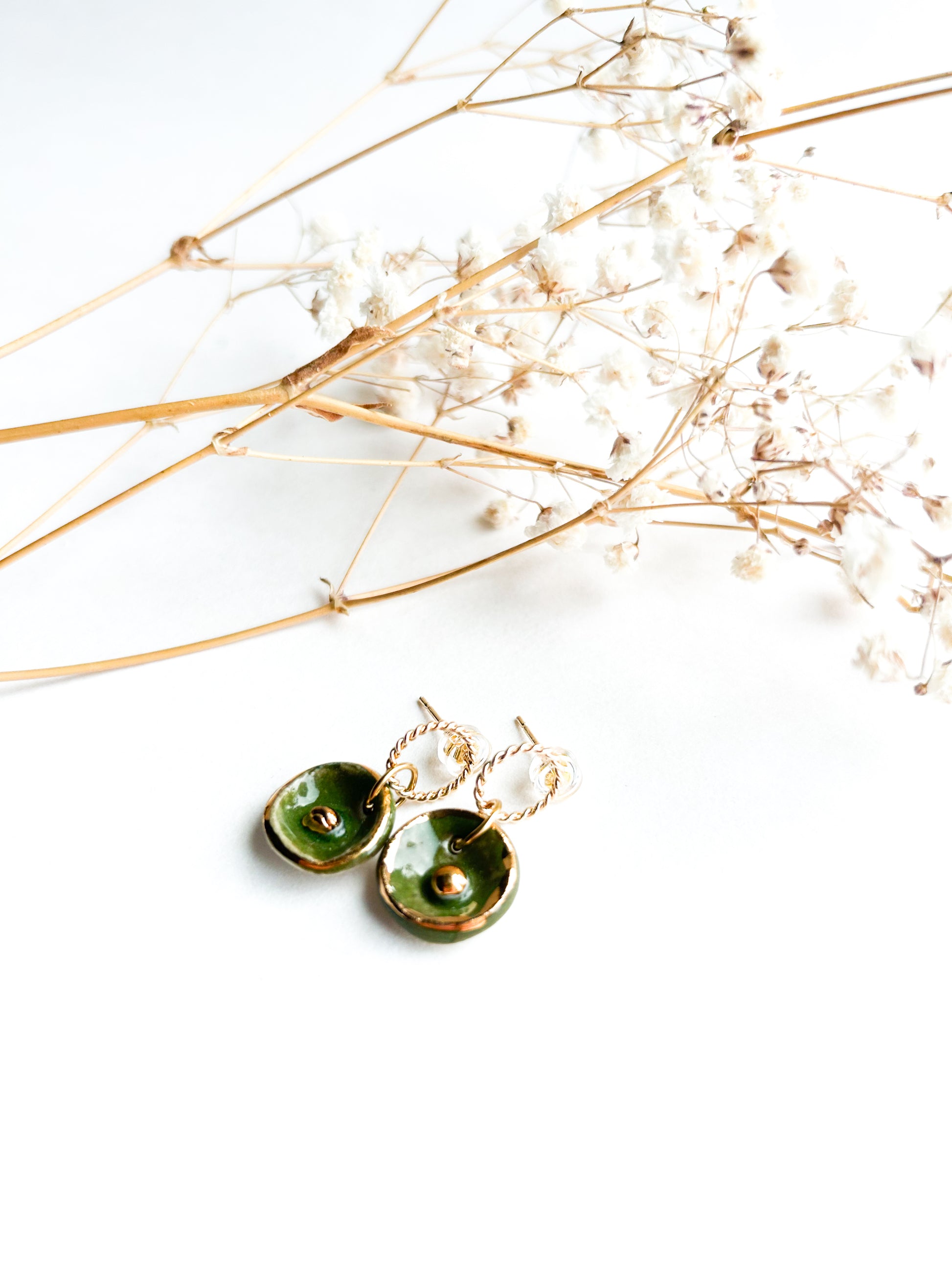 Part of the AMAPOLA Collection, these earrings celebrate the delicate charm of blooming poppies. Handbuilt and handpainted with care, each pair is made using high-fired porcelain and stoneware clay, then detailed with a fine layer of 22k gold luster for a luminous finish.