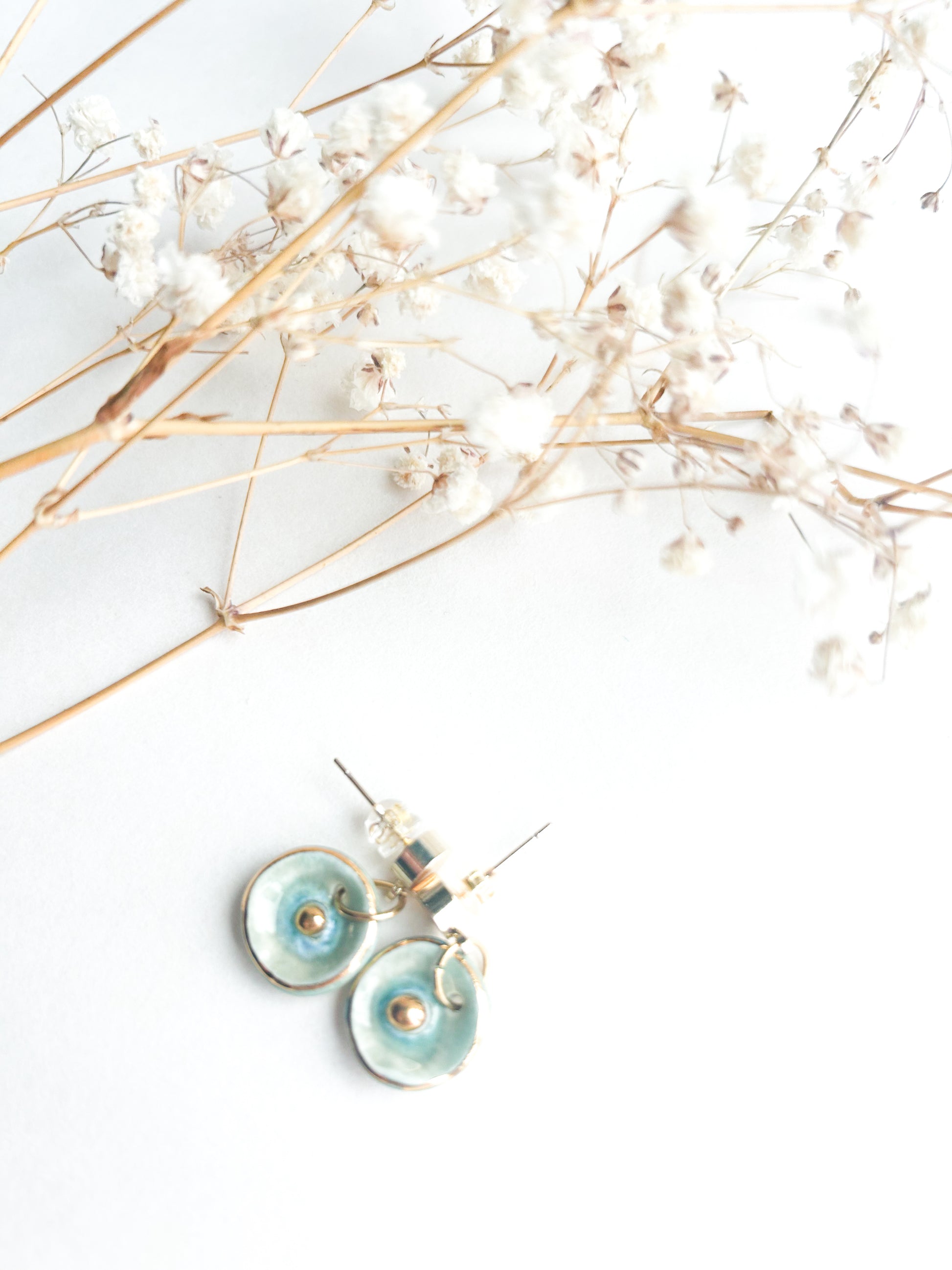 Part of the AMAPOLA Collection, these earrings celebrate the delicate charm of blooming poppies. Handbuilt and handpainted with care, each pair is made using high-fired porcelain and stoneware clay, then detailed with a fine layer of 22k gold luster for a luminous finish.