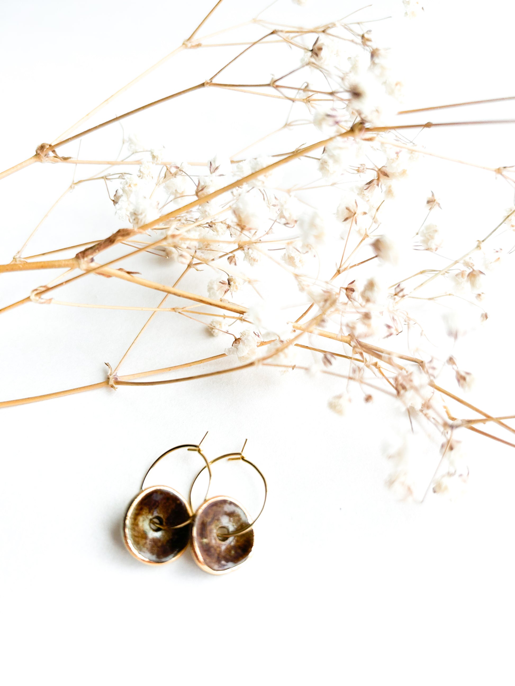 Part of the DONNA Collection, these earrings are designed to elevate your daily wardrobe with a refined artistic touch. Each pair is carefully handbuilt and handpainted using high-fired porcelain, then finished with a delicate layer of 22k gold luster to bring out their timeless charm.