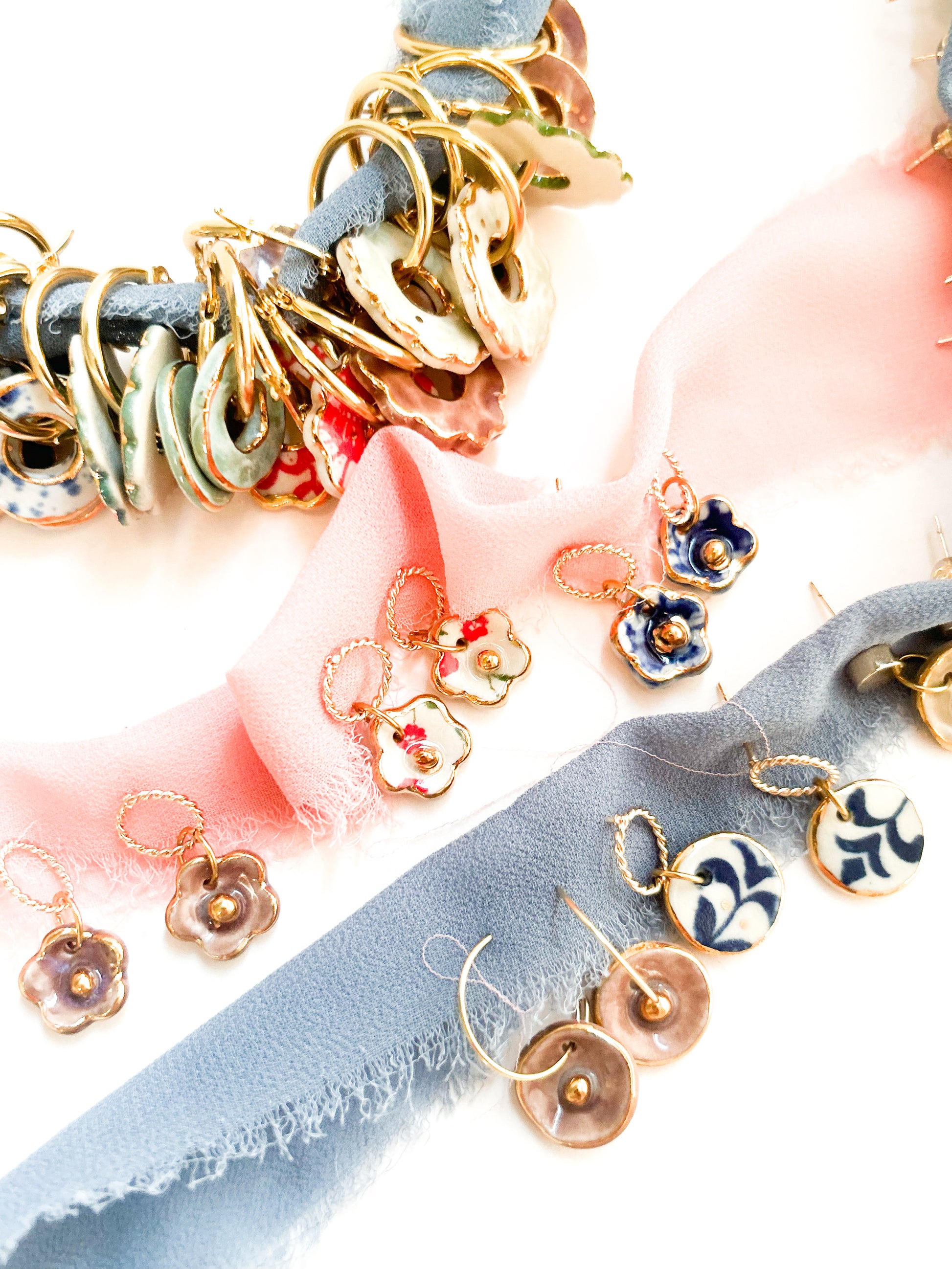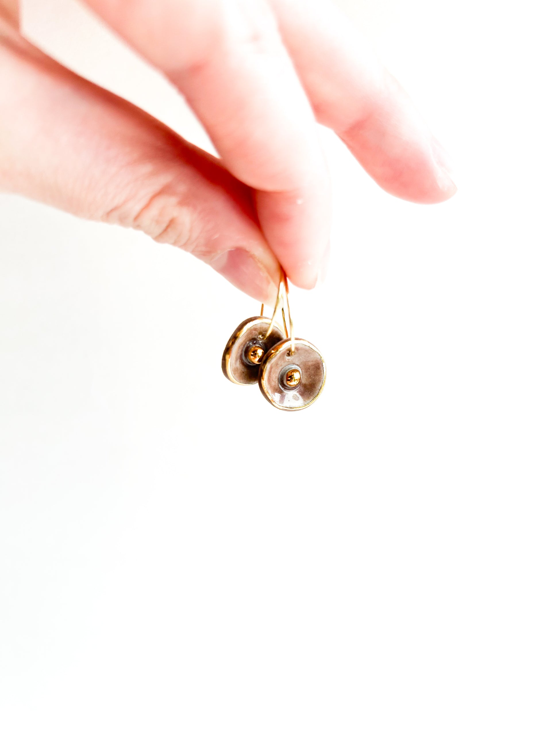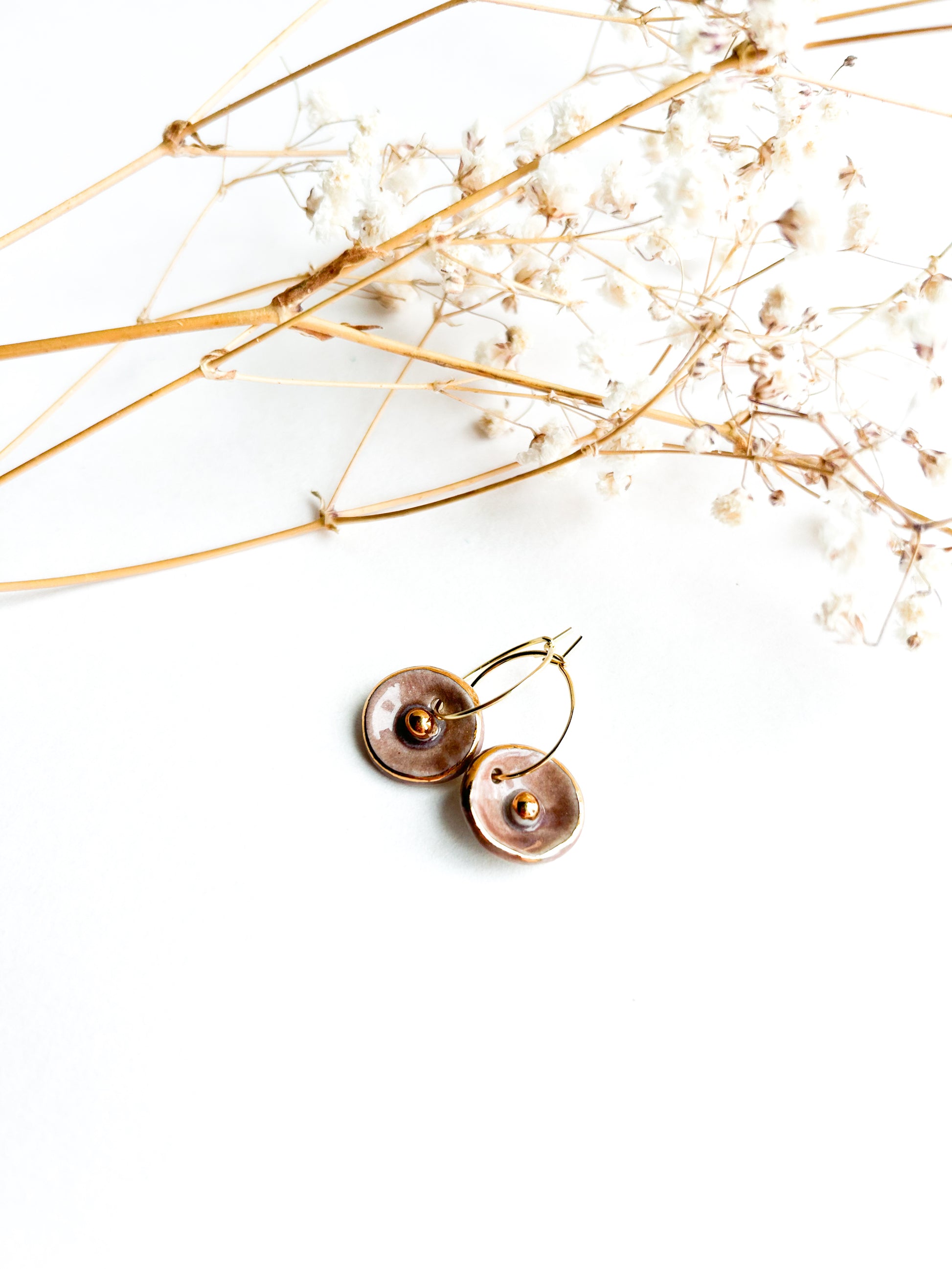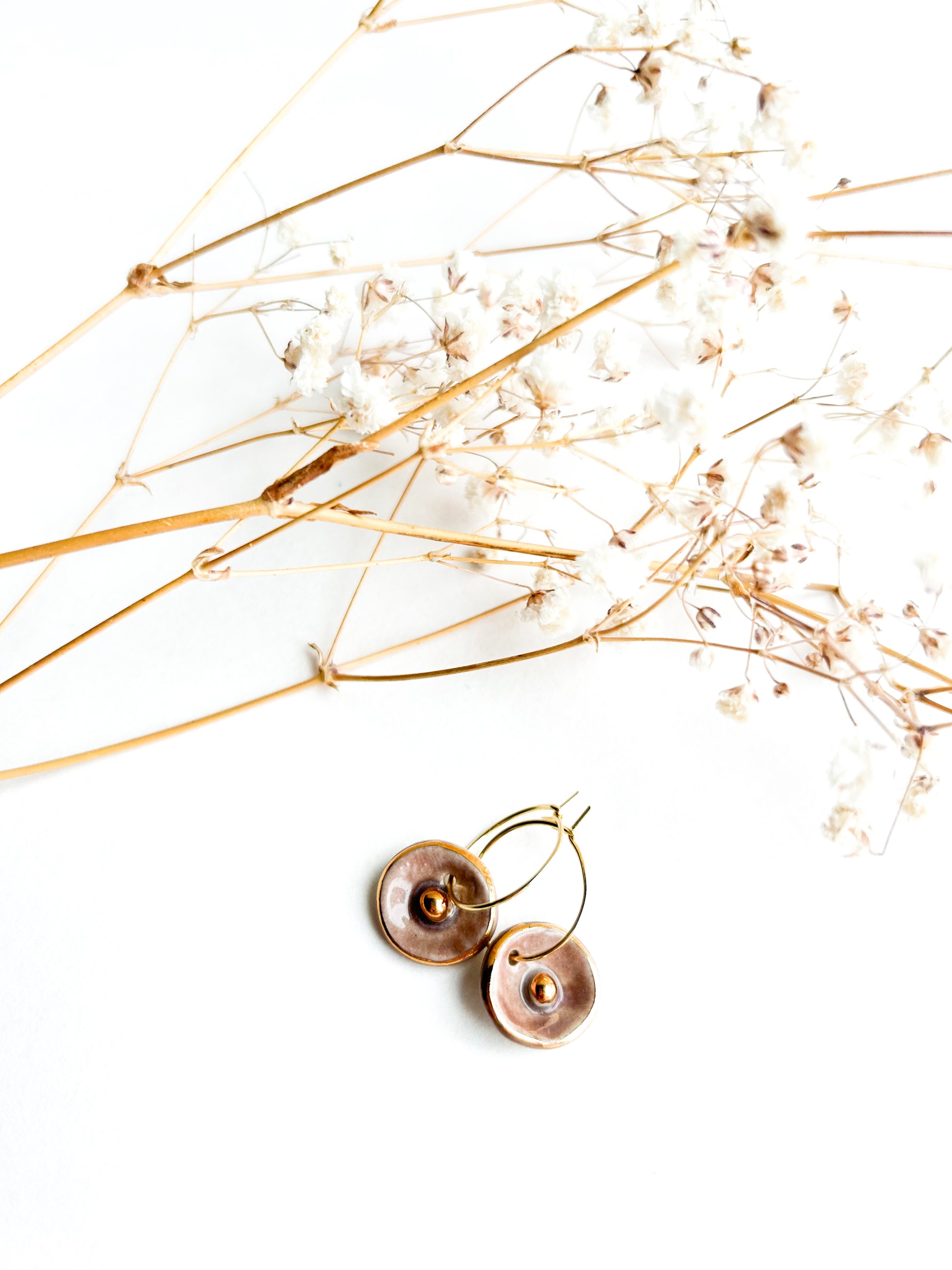 Part of the AMAPOLA Collection, these earrings celebrate the delicate charm of blooming poppies. Handbuilt and handpainted with care, each pair is made using high-fired porcelain and stoneware clay, then detailed with a fine layer of 22k gold luster for a luminous finish.